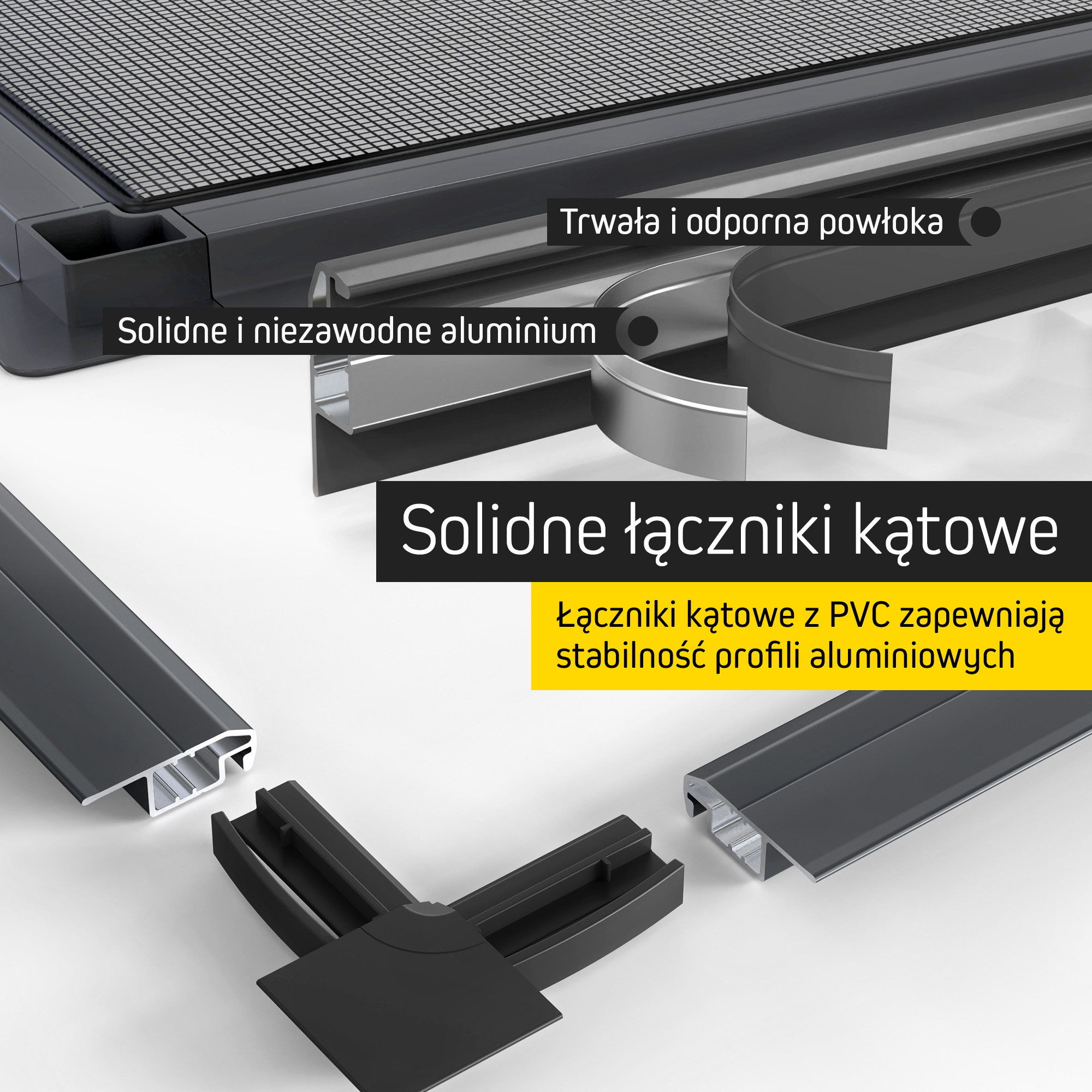 - Siatka wzmocniona – odporna na zadrapania zwierząt domowych i uszkodzenia mechaniczne
