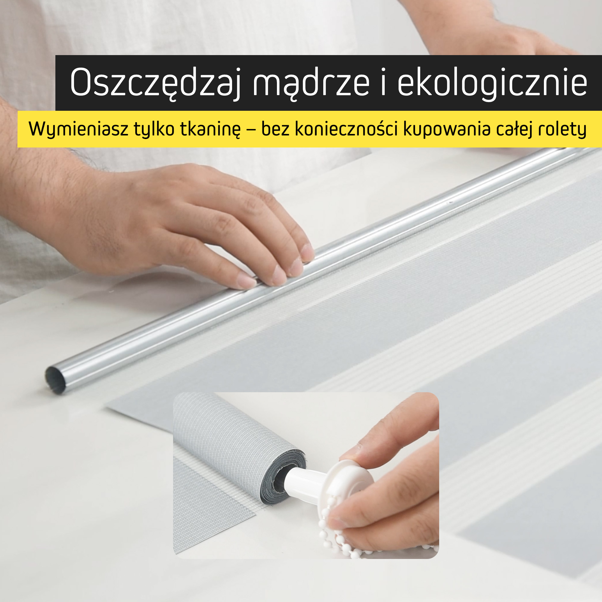 Wymieniając jedynie materiał rolety zamiast całego systemu, oszczędzasz zasoby i dbasz o środowisko. To prosty sposób, aby odświeżyć wnętrze w bardziej zrównoważony sposób.