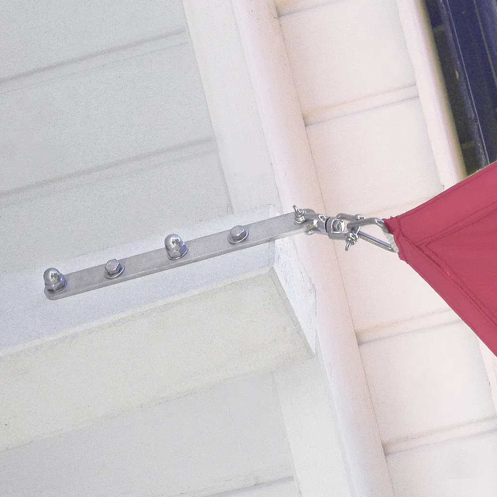 Oferujemy także szeroki wybór dodatkowych akcesoriów – takich jak śruby rzymskie czy uchwyty ścienne i sufitowe – dostępnych opcjonalnie w naszym sklepie: Materiały do mocowania żagla przeciwsłonecznego.