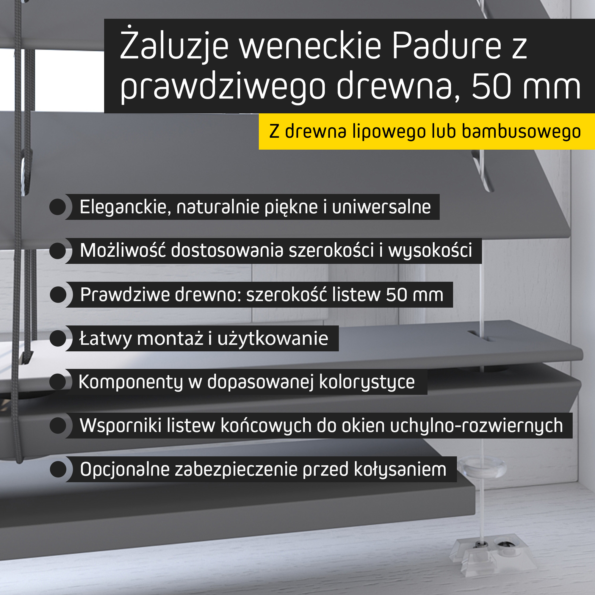 | Nazwa produktu | Żaluzja drewniana na wymiar PADURE | 50 mm |