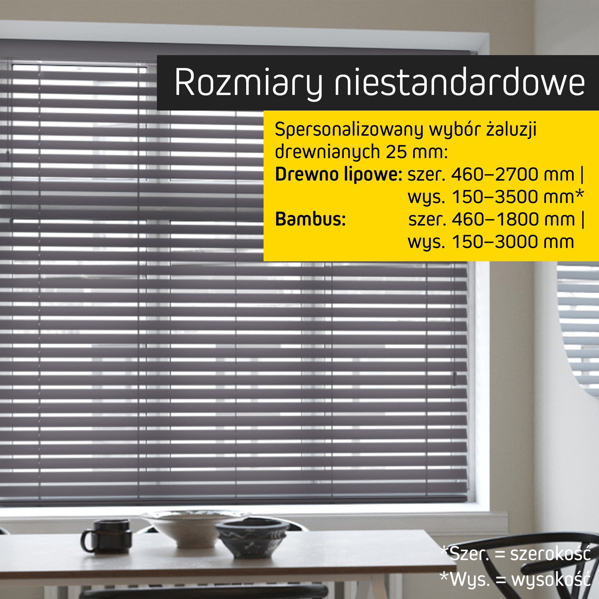 Wybierz żaluzje wykonane z drewna lipowego (basswood) lub z delikatnego, szlachetnego bambusa — każdy z tych materiałów wprowadza do wnętrza unikalne usłojenie, ciepło i autentyczny, naturalny charakter. Lamele o szerokości 50 mm zapewniają precyzyjną regulację światła oraz wysoki poziom prywatności.