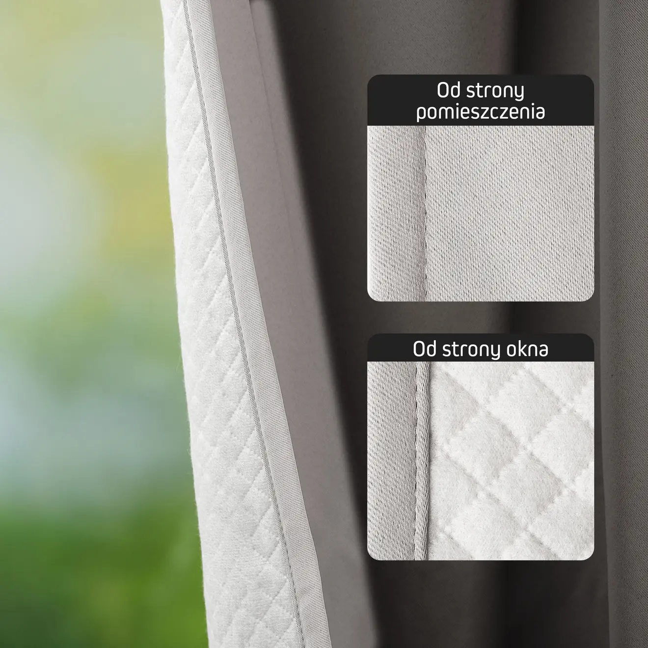 Zasłona składa się z tkaniny zaciemniającej z przodu oraz tkaniny termicznej z tyłu. Takie połączenie chroni przed ciepłem, zimnem i przeciągami. Dzięki odpowiednio wykorzystanej przestrzeni między warstwami tkanin możesz oszczędzać energię, wspierając przy tym zrównoważony rozwój.